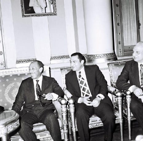 This brings us to Hosni Mubarak. After rising through the ranks of the Egyptian air force, Mubarak had become Sadat’s vice president in 1975. Mubarak had gained national fame for his role in Egypt’s initially successful offensive against Israel in 1973 and began to portray himself as part of a younger generation that had come to prominence in the post-revolutionary era—he was himself ten years younger than both Sadat and Nasser.